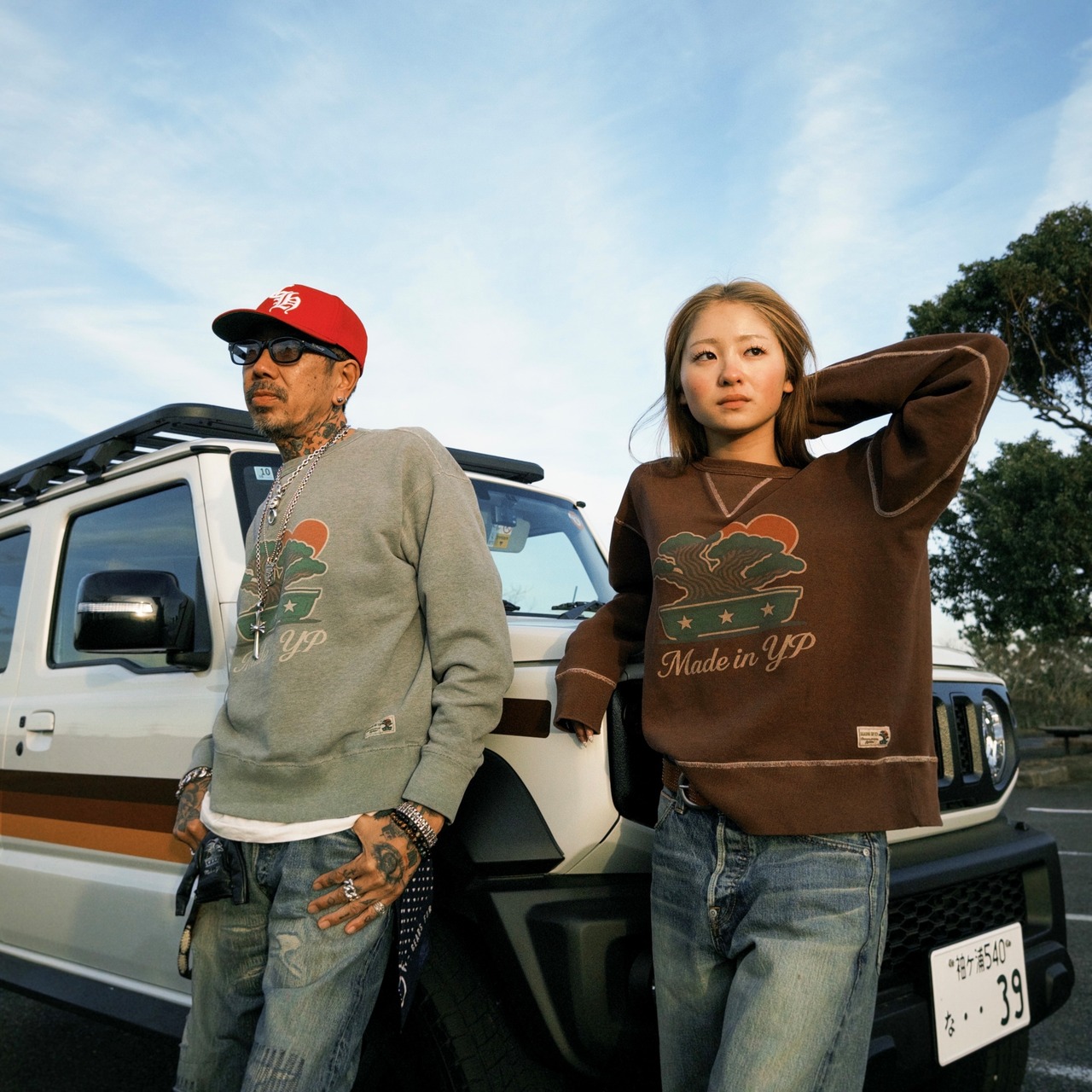 MADE IN YP "凡才"スウェット:ブラウン